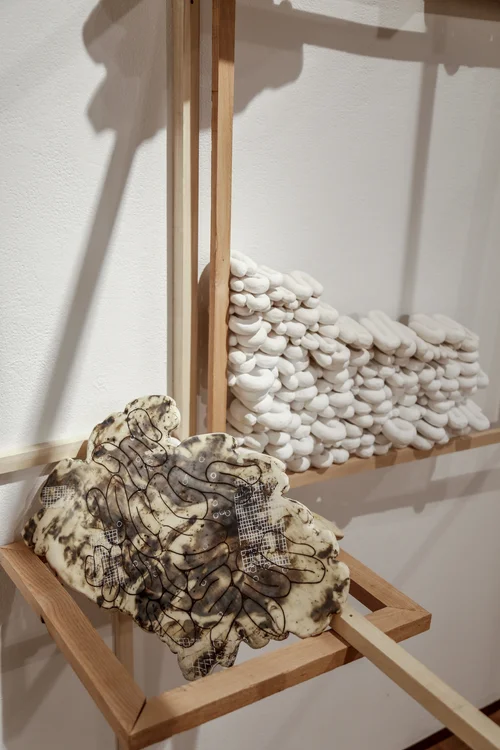 Midrange Fired Ceramics, Underglaze pencil, Thread